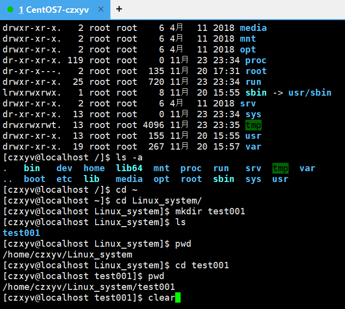 查看当前所处的路径。
