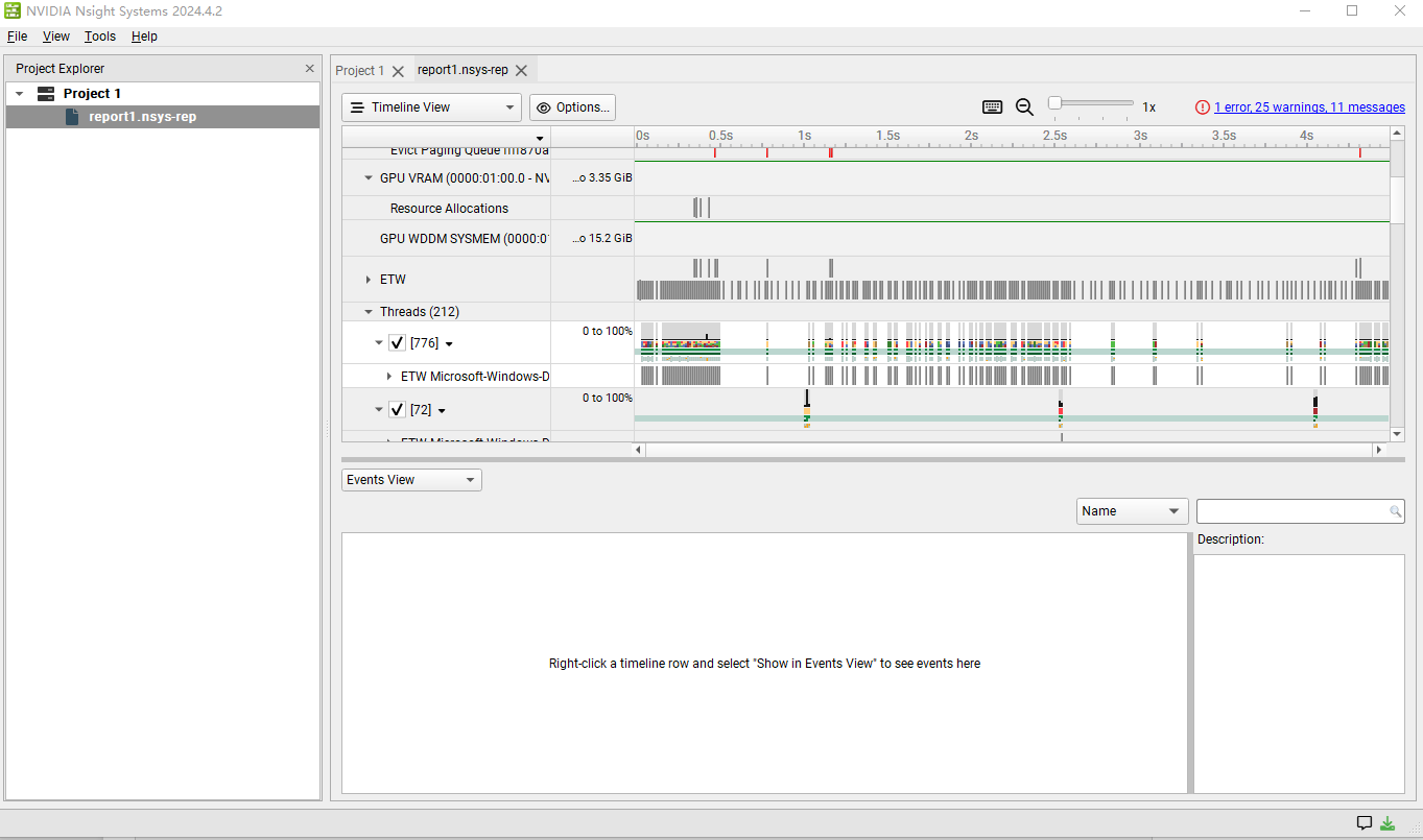 在老的CUDA版本(11)中,可以使用Visual Profie进行相关的状态监控(注意:如果在新版本中使用,则会报一个"I just recently installed CUDA 12.3 on Windows 11. However I wasn't able to launch nvvp. It gives the error "A java Runtime Environment (JRE) or Java Development Kit(JDK) must be available in order to run nvvp". "的错误。原因是Visual Profie与Java8绑定无法与更高的Java9等兼容,此为NVIDIA故意所为,请使用Nsight System),而在新的版本(12)推荐使用NVIDIA Nsight System。细节的使用以后会专门分析说明。可以前面的CUDA程序看分析结果: