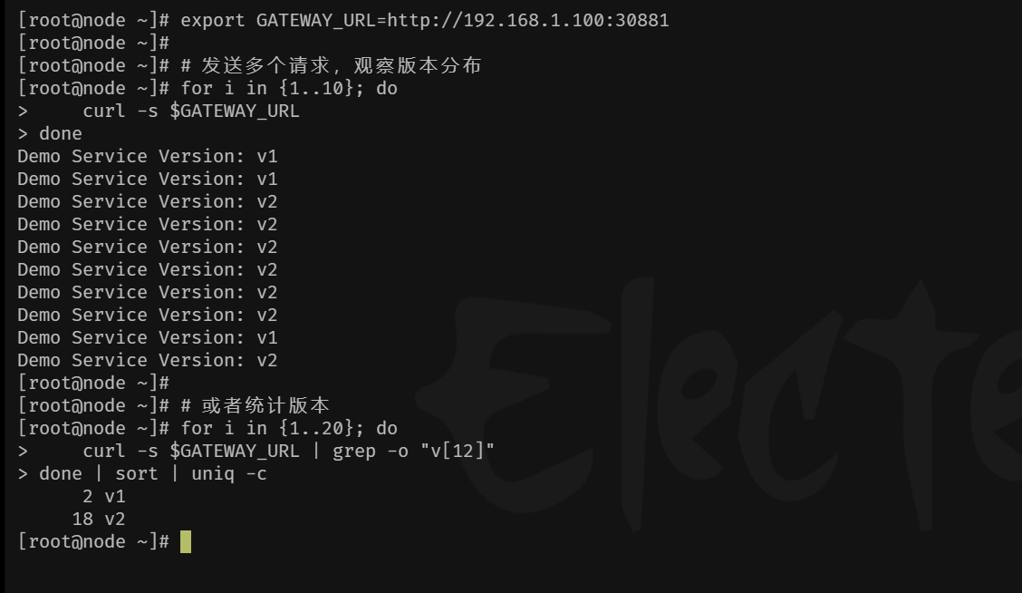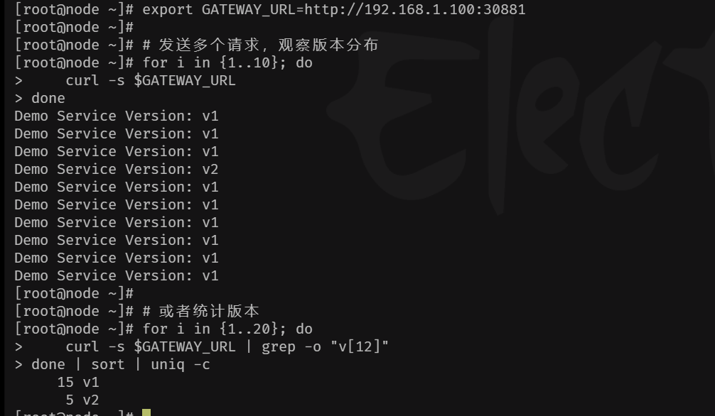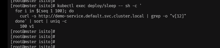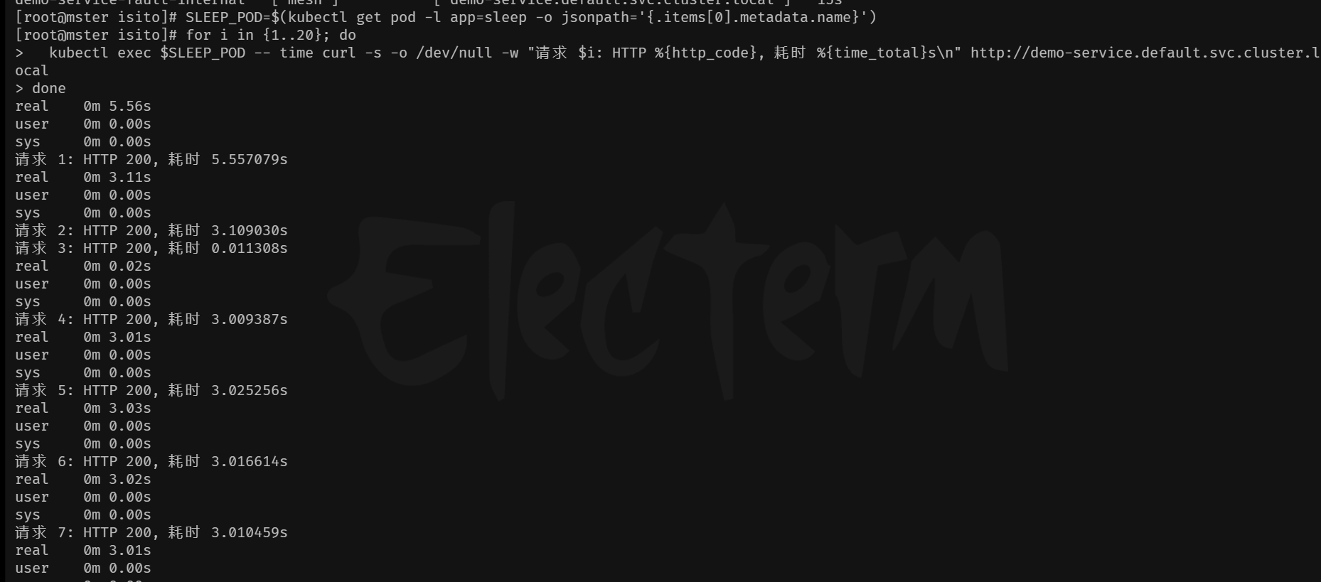 for i in {1..20}; do kubectl exec $SLEEP_POD -- time curl -s -o /dev/null -w "请求 $i: HTTP %{http_code}, 耗时 %{time_total}s\n" http://demo-service.default.svc.cluster.local; done