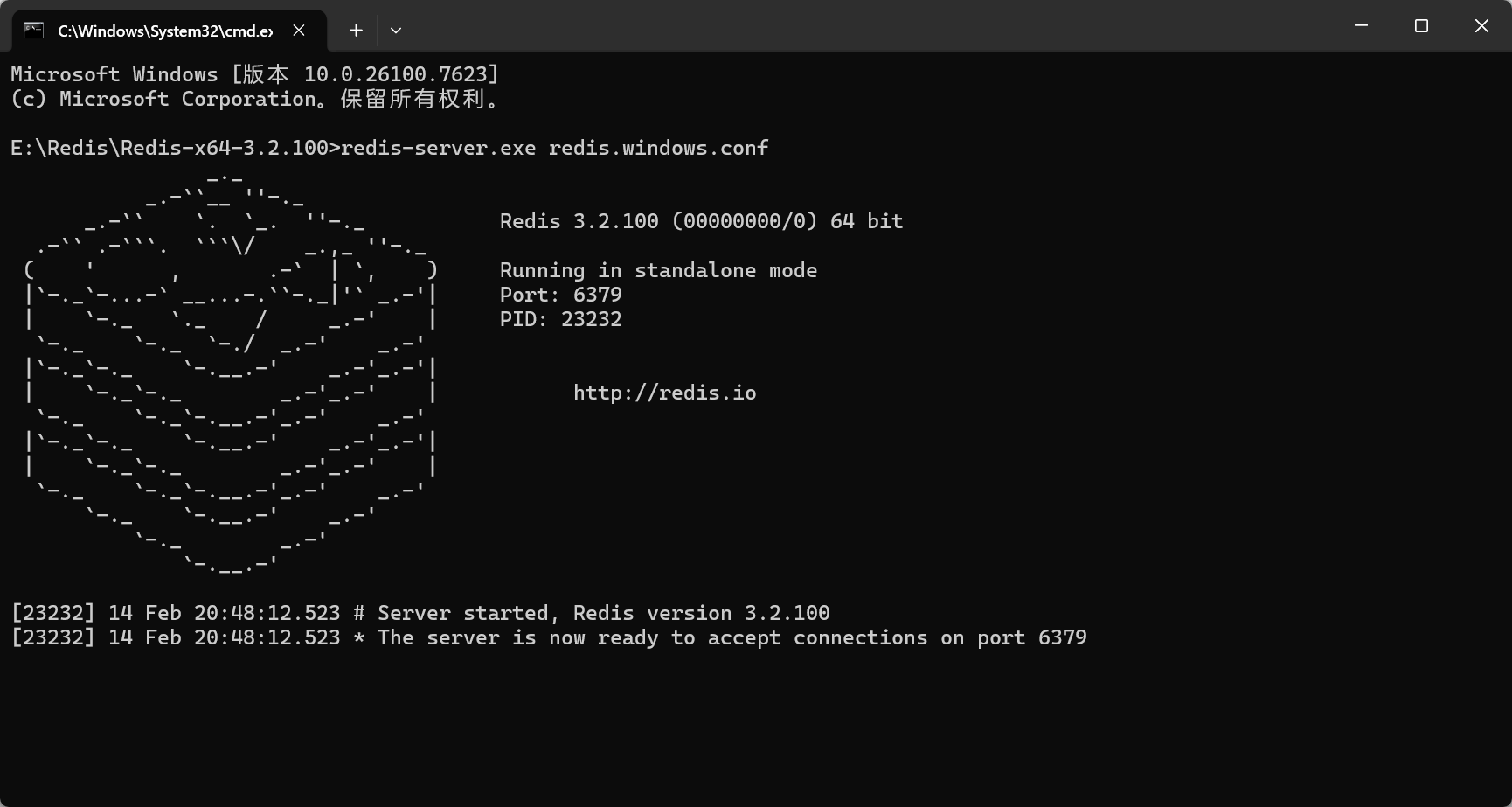 命令: redis-server.exe redis.windows.conf