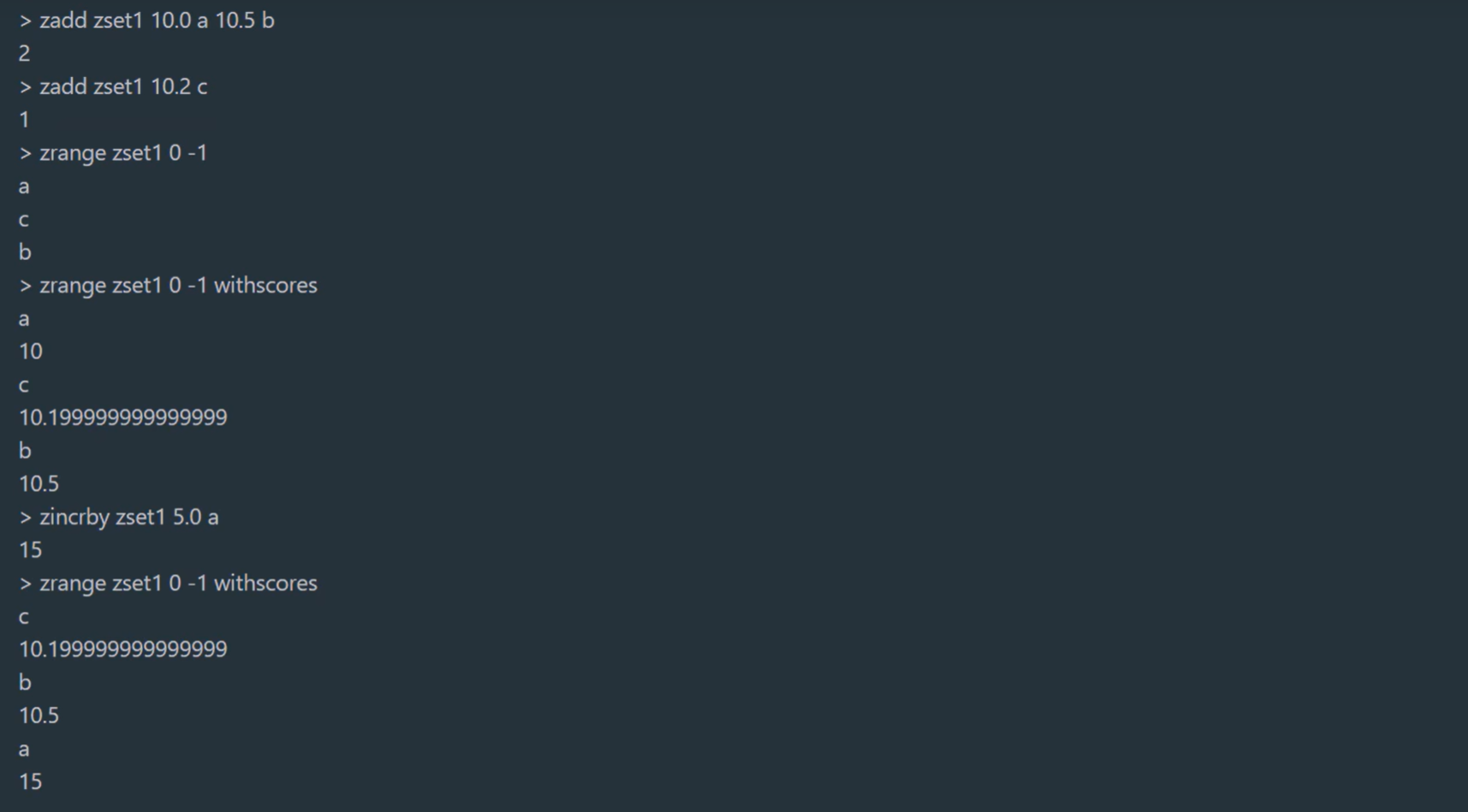 zincrby key increment member 有序集合中对指定成员的分数加上增量 increment