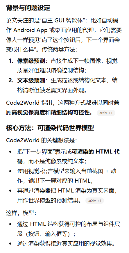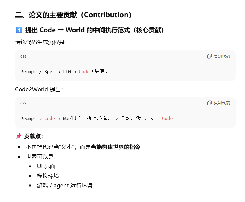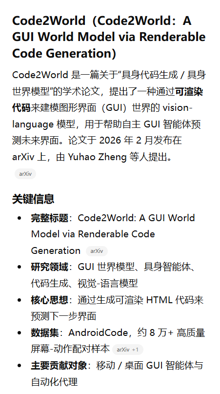 Code2World 研究:如何把"代码"映射成一个可交互、可验证、可执行的"世界(World)",并通过环境反馈反向改进代码生成。