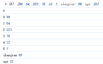如果要循环遍历这个数组,以前的for循环,while循环就不管用了,得用for-in循环