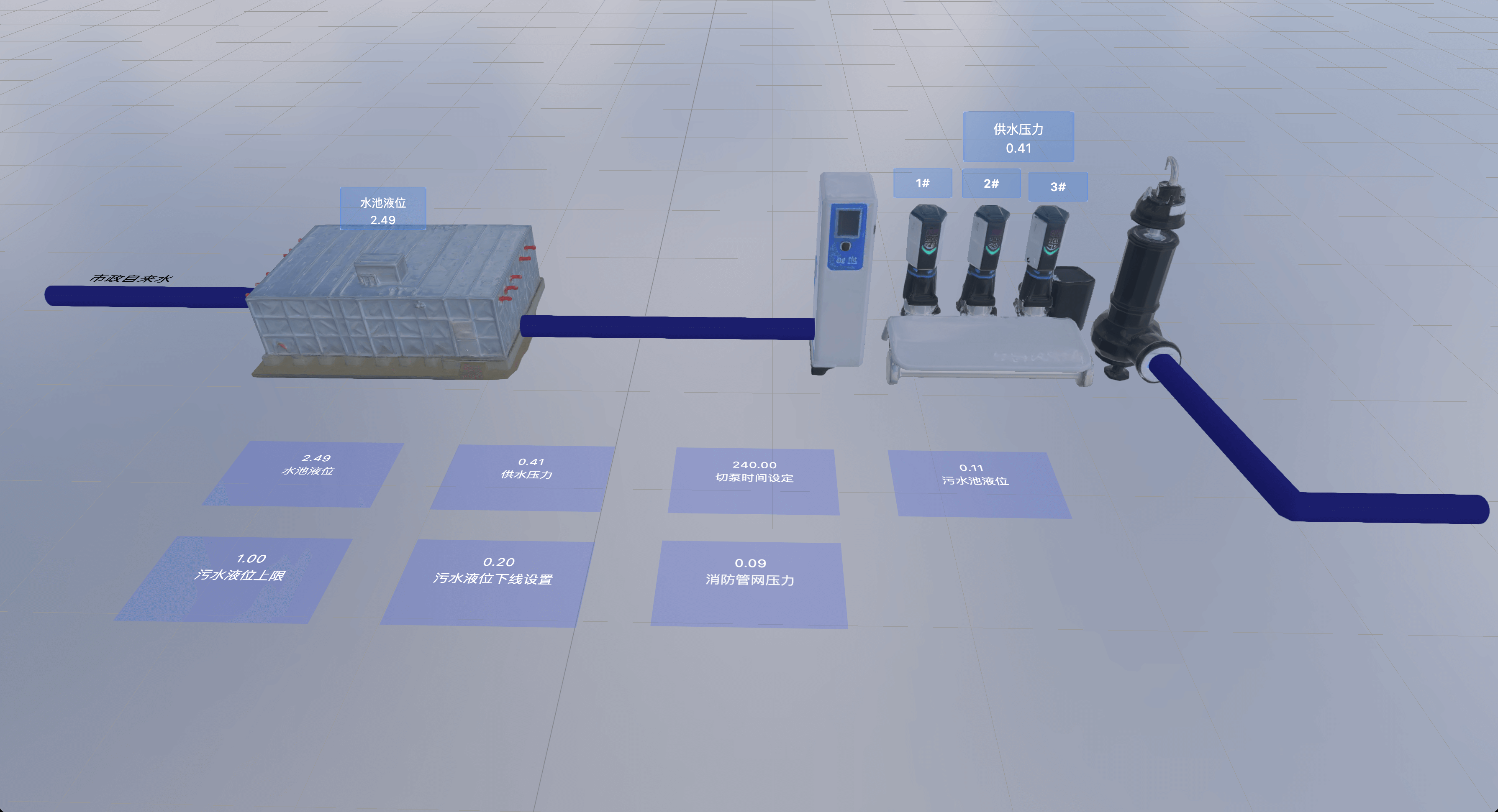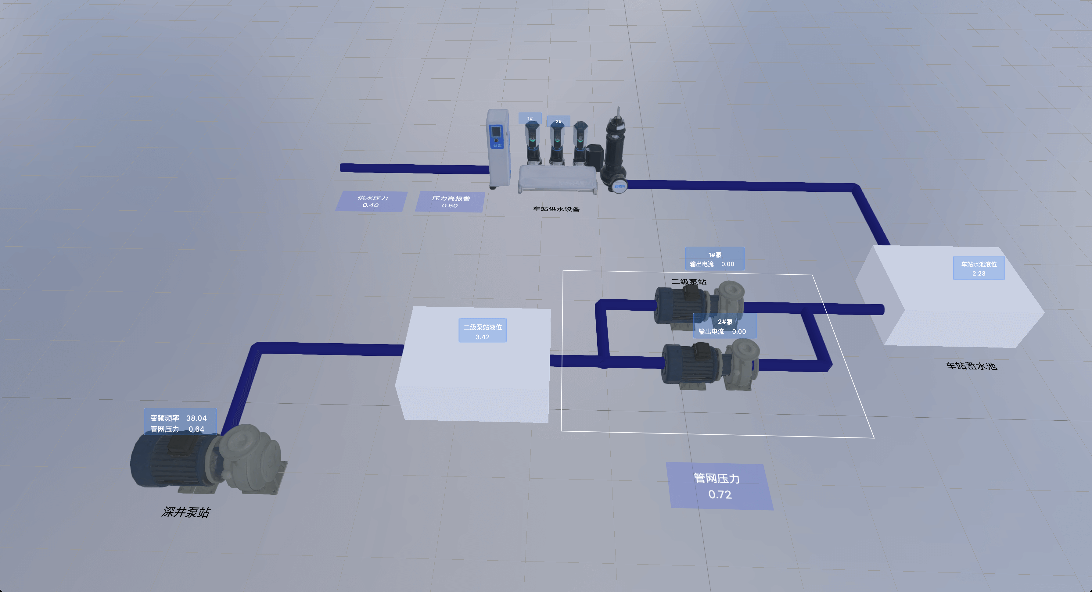 某水处理厂需要向参观者和上级部门展示水处理的完整工艺流程,传统的平面图无法直观展示。