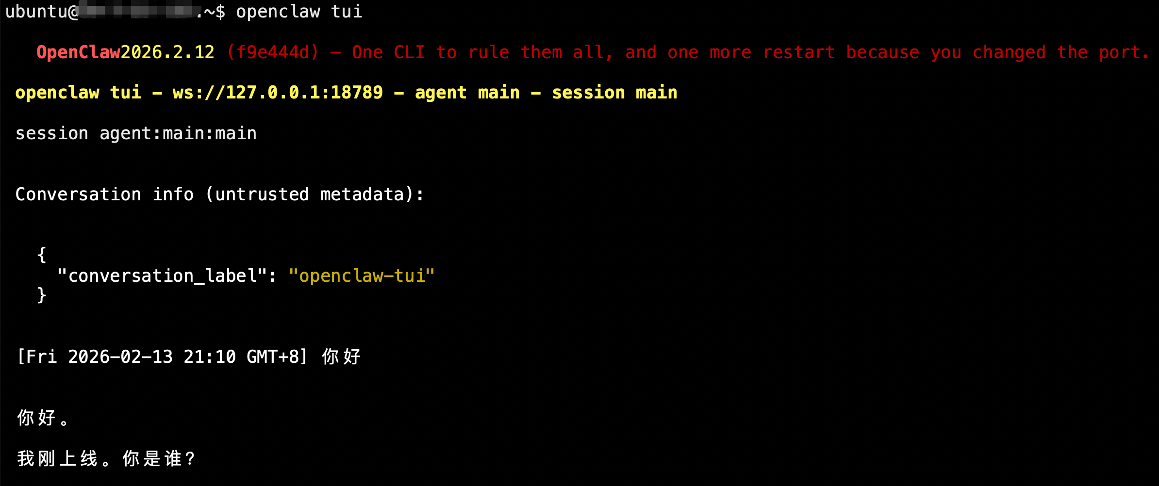 使用 TUI(终端界面)进行对话,这是最直接、最适合测试模型是否配置成功的交互方式。