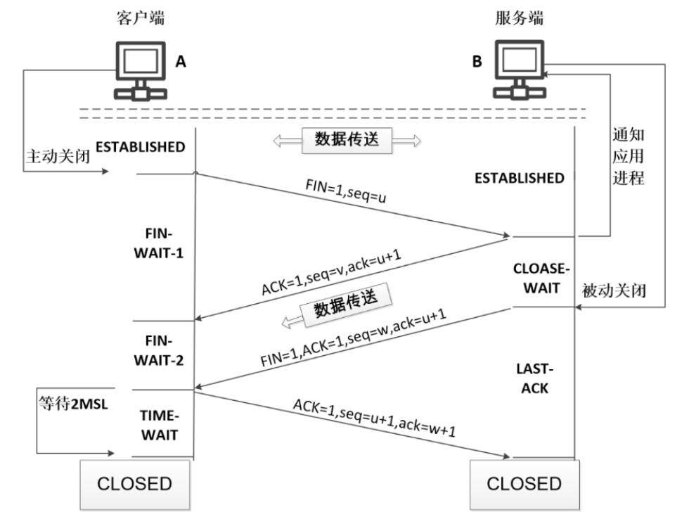 ACK,进入TIME_WAIT状态。经过 2MSL (最大报文生存时间)后,连接彻底关闭。服务端收到 ACK 后直接进入CLOSED状态。- 意图: "行,拜拜。"(客户端等一会儿确保对方收到了再走)。