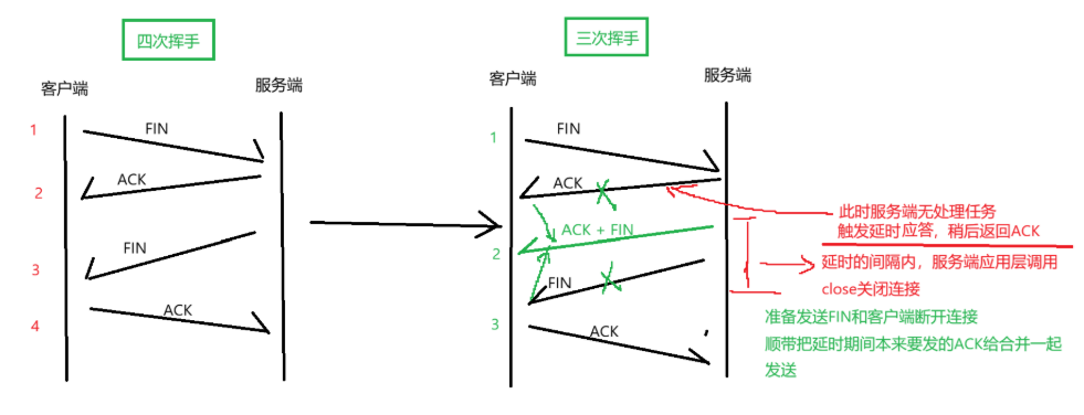 延迟应答是一种提高网络传输吞吐量的一种手段,当接受方收到数据时,不会立即返回一个ACK,而是先等待一段时间
