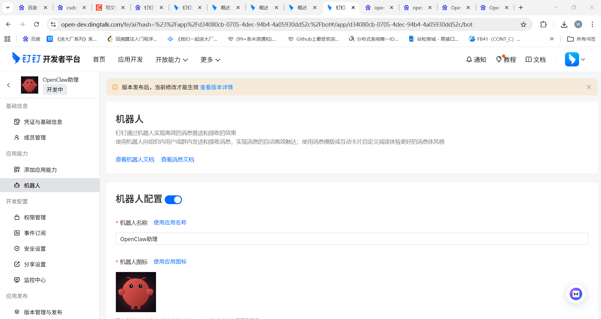 打开机器人配置,必填后完成后,其他默认