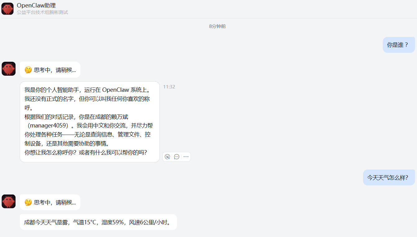 验证大模型配置,可以问下天气: