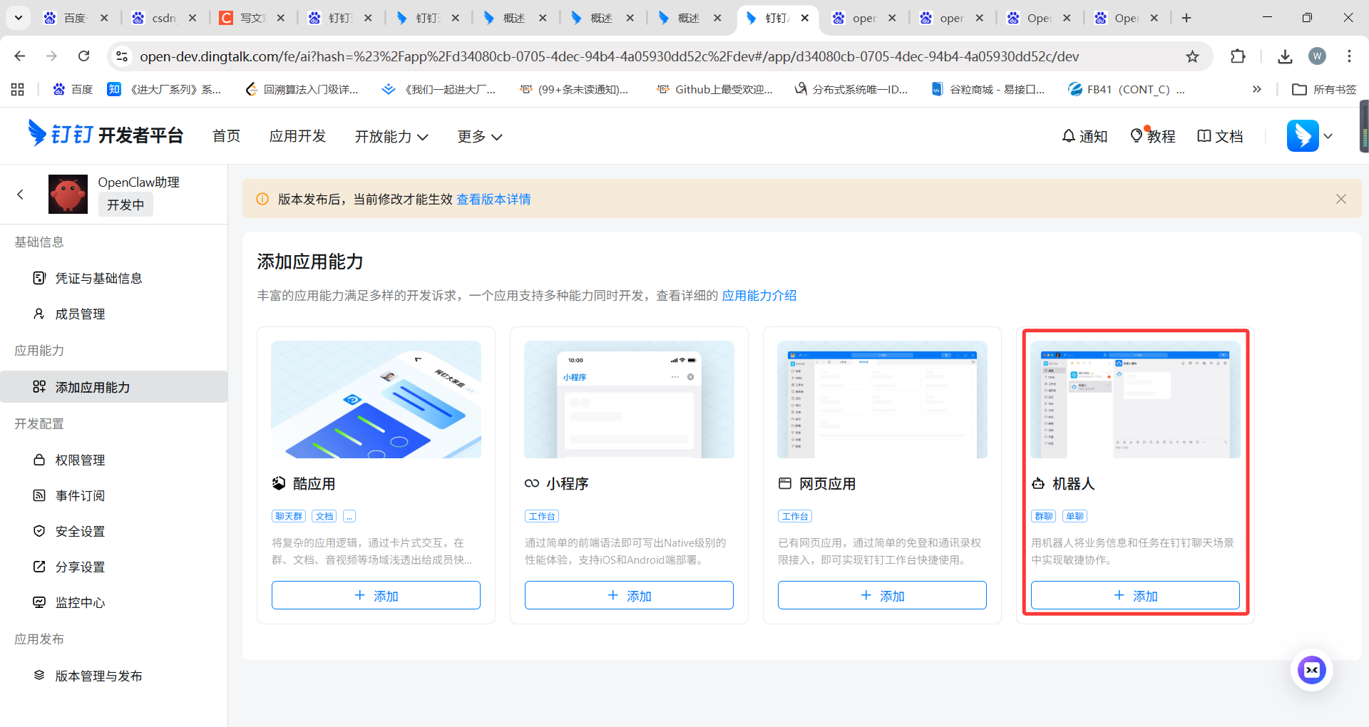 2.添加应用后,再向应用添加机器人