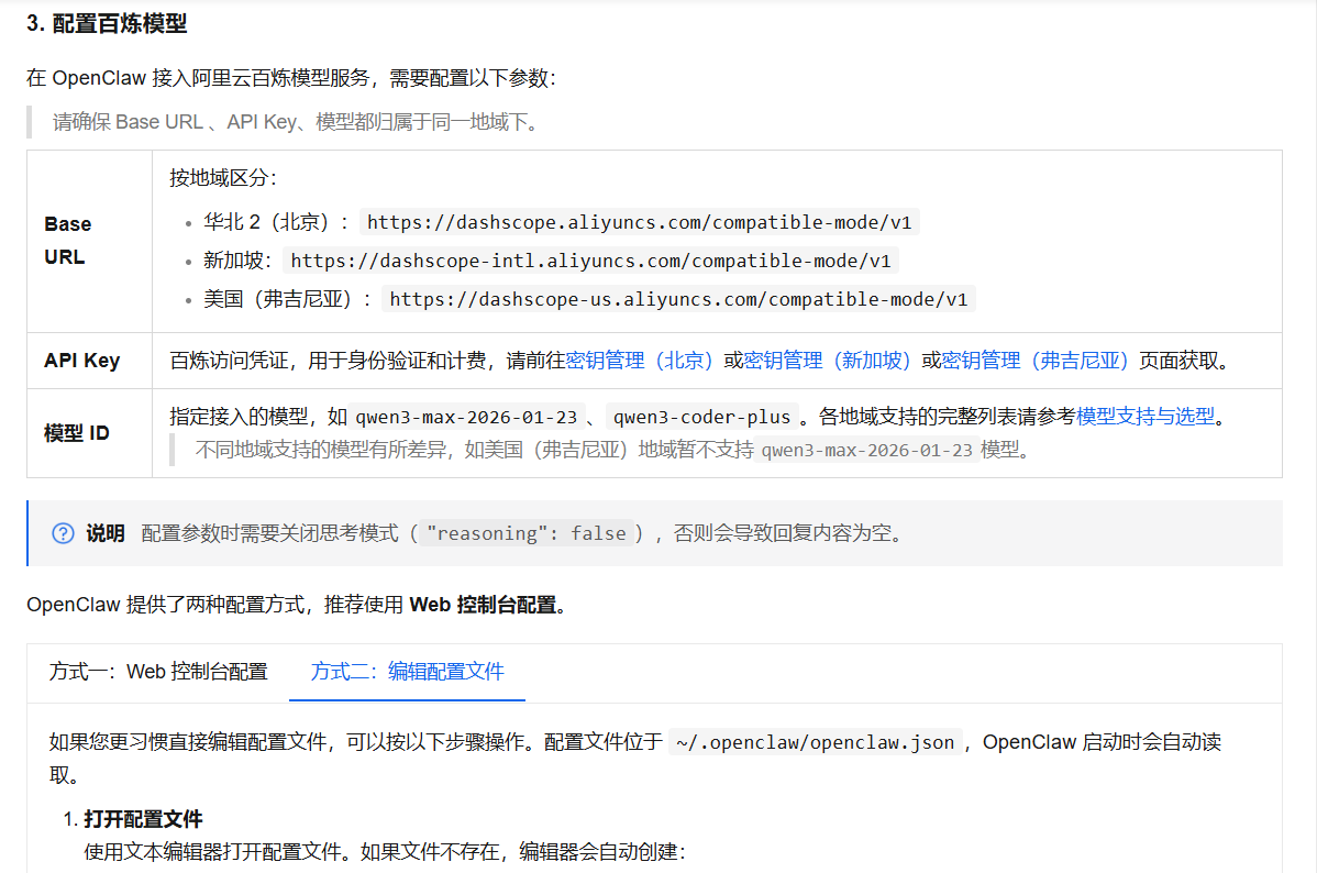 参考阿里云百炼文档 :https://help.aliyun.com/zh/model-studio/openclaw#step-config-manual-title