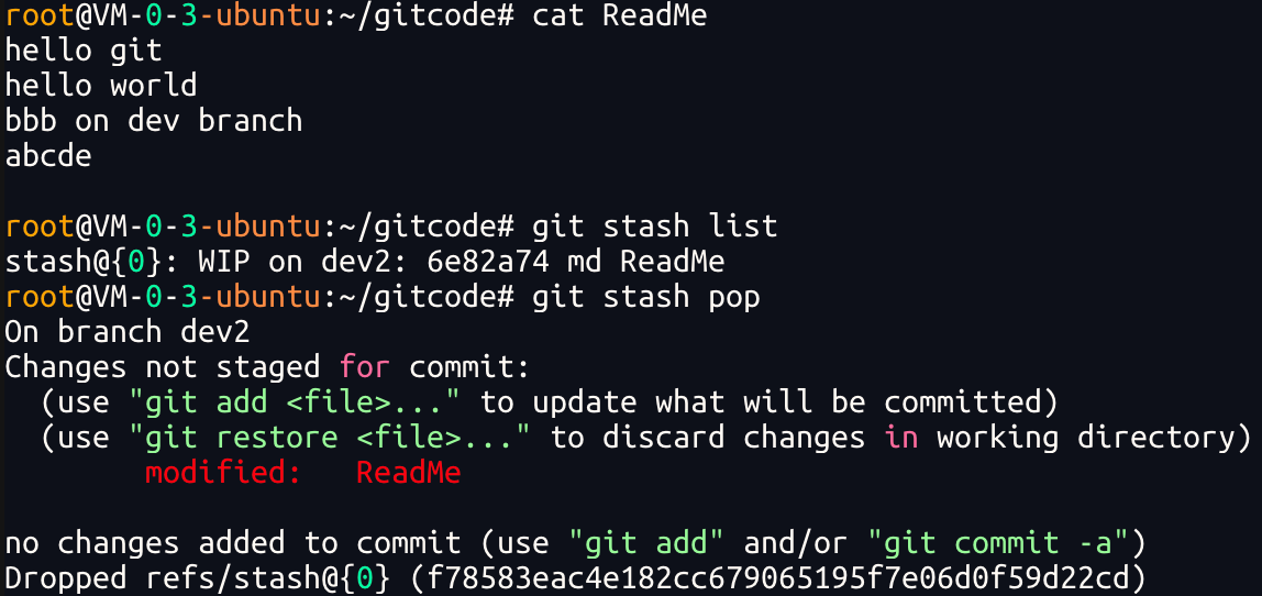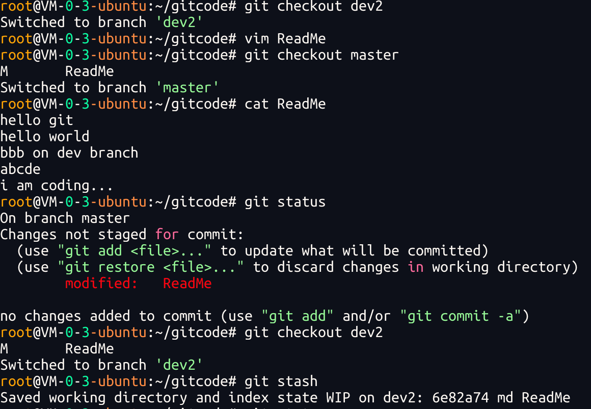 Git 提供了git stash命令,可以将当前⼯作区信息进⾏储藏,被储藏的内容可以在将来某个时间恢复出来.