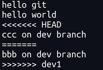 这种情况下,Git 只能试图把各⾃的修改合并起来,但这种合并就可能会有冲突,如下所示: