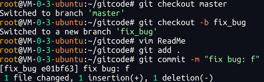 ⽤ git status 查看⼯作区,就是⼲净的(除⾮有没有被 Git 管理的⽂件),因此可以放⼼地创建分⽀来修复bug.储藏 dev2 ⼯作区之后,由于我们要基于master分⽀修复 bug,所以需要切回 master 分⽀,再新建临时分⽀来修复 bug,示例如下:
