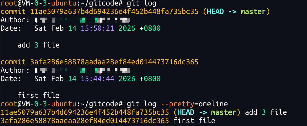 截⾄⽬前为⽌,我们已经更够将代码直接提交⾄本地仓库了.我们可以使⽤ git log命令,来查看下历史提交记录: