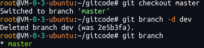 最后,不要忘记 dev1分⽀使⽤完毕后就可以删除了: