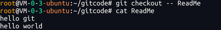 代呢?Git 其实还为我们提供了更好的⽅式,我们可以使⽤git checkout -- [file]命令让⼯作区的⽂件回到最近⼀次 add 或 commit 时的状态.要注意 git checkout -- [file] 命令中的--很重要,切记不要省略,⼀旦省略,该命令就变为其他意思了,后⾯我们再说.