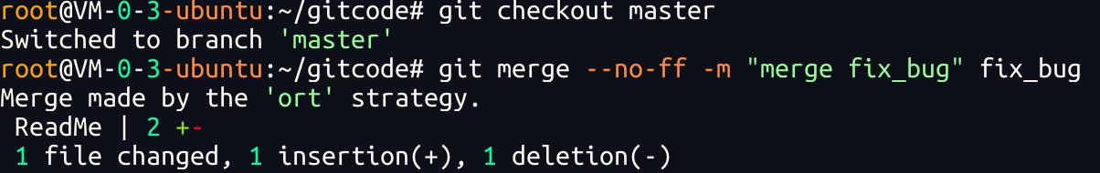修复完成后,切换到 master 分⽀,并完成合并: