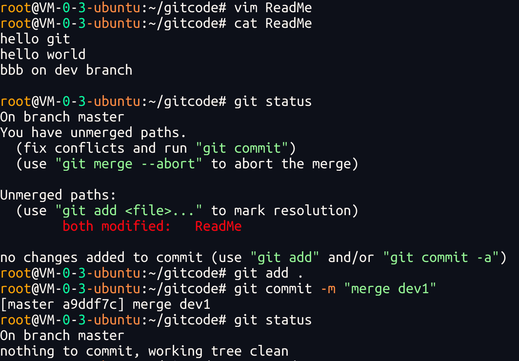 到这⾥冲突就解决完成,此时的状态变成了: