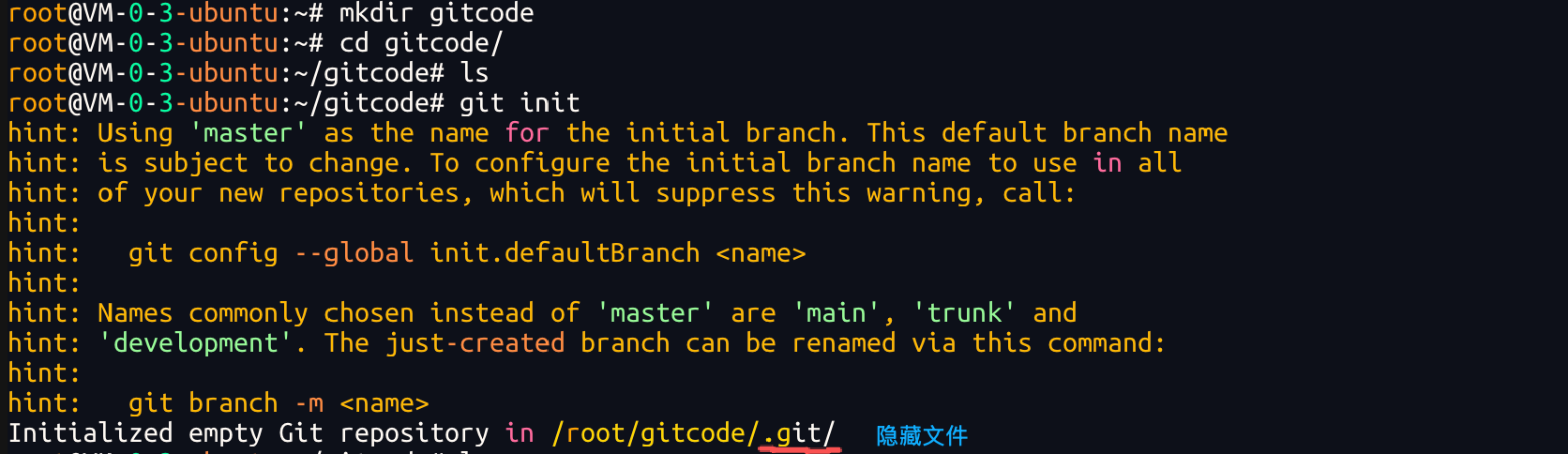git init,注意命令要在⽂件⽬录下执⾏,例如: