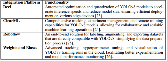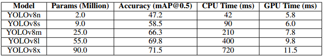 对 Microsoft COCO 和 Roboflow 100 等数据集的基准评估证明了 YOLOv8 卓越的准确性和效率,将其定位为快速发展的目标检测领域中最先进的解决方案。随着实时、高精度目标检测需求的增长,YOLOv8 作为一种多功能且强大的模型脱颖而出,非常适合研究和工业应用。未来的发展预计将建立在这些进步的基础上,进一步完善 YOLOv8 的功能并扩大其在整个计算机视觉领域的影响。