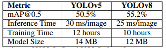 | 模型 | YOLOv5 mAP@0.5 | YOLOv5 参数量 (M) | YOLOv5 FLOPs@640(B) | YOLOv8 mAP@0.5 | YOLOv8 参数量 (M) | YOLOv8 FLOPs@640(B) | 精度提升 |