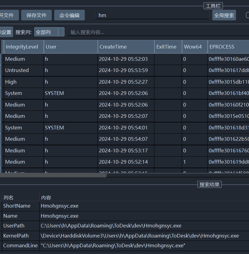 然后在lovememlite中打开进程列表,搜索hmo,发现该程序在todesk下。