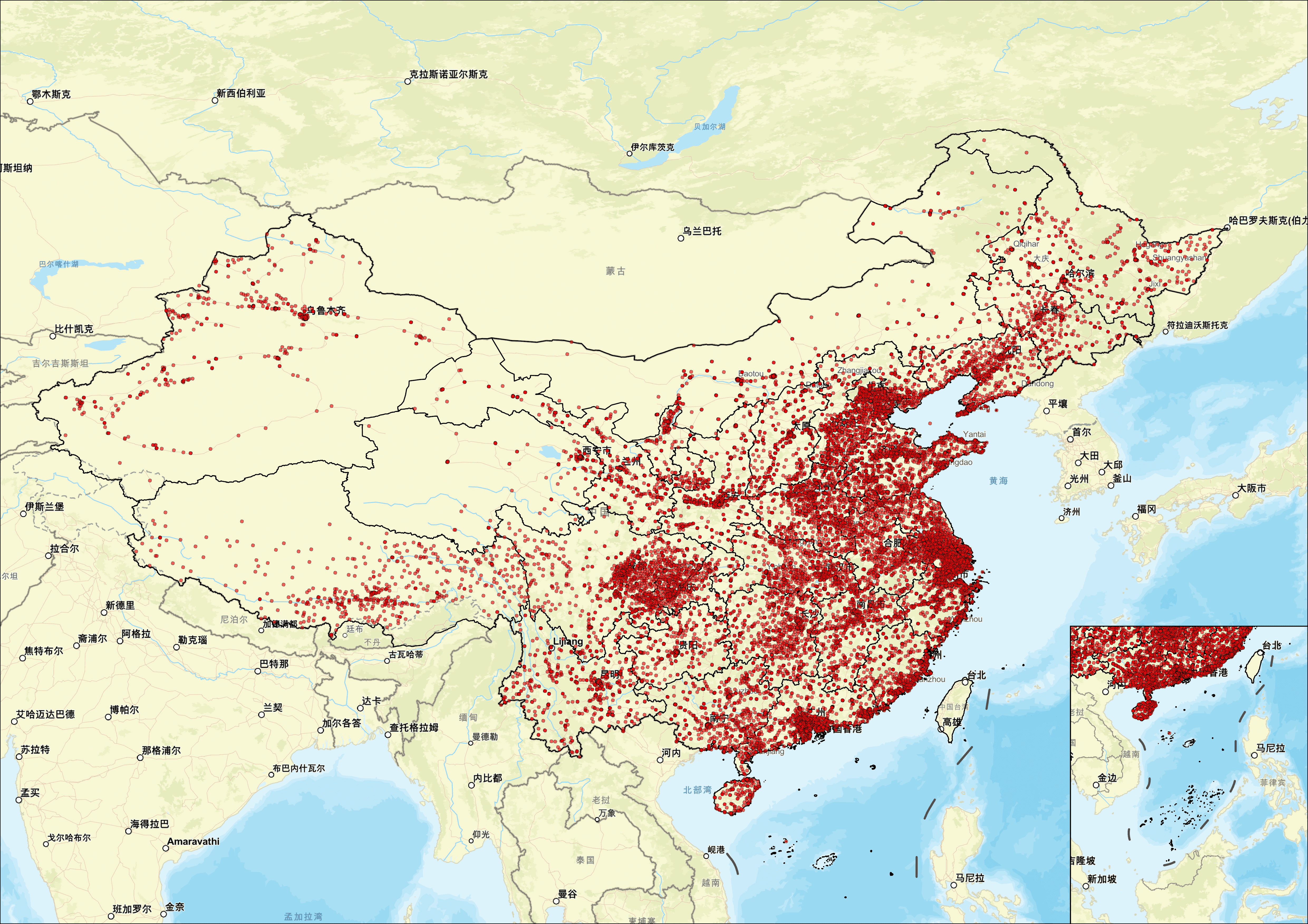 从中国邮政网点的空间分布来看,其布局呈现出鲜明的"普遍服务全覆盖、东密西疏梯度分布、沿交通干线集聚、深度下沉县域与乡村"的特征。在东部沿海发达地区,如京津冀、长三角、珠三角等城市群,邮政网点高度密集,形成连片的高密度服务网络。仅上海市中心城区就设有数十个邮政支局和综合便民服务站,深圳、杭州、广州等城市同样呈现密集化布局,这不仅反映了区域旺盛的寄递、金融与政务代办需求,也彰显了中国邮政在经济核心区的强大服务渗透力。