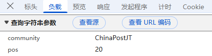 **负载:**对于GET请求:负载通常包含了传递的参数,有些网页负载可能为空,或者没有负载,因为所有参数都通过URL传递,这里我们可以看到pos(页码),等标签,没有进行加密;