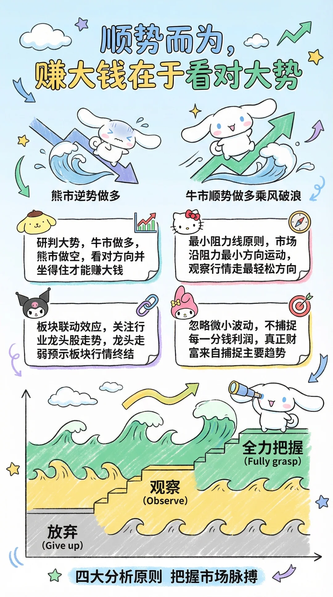 尊重趋势不抱怨,克制贪婪与恐惧,保持平和心态是看清真相的关键。