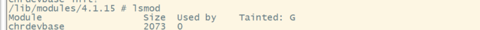 卸载以后使用 lsmod 命令查看 chrdevbase 这个模块还存不存在,结果如下图 所示: