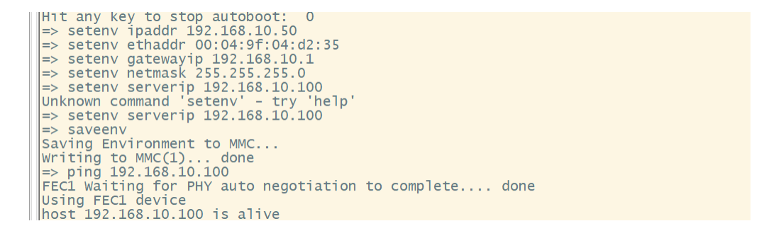 setenv bootargs 'console=ttymxc0,115200 root=/dev/nfs \