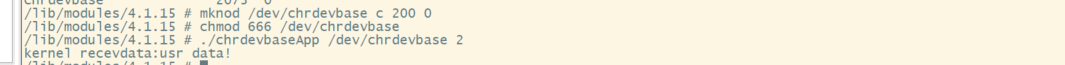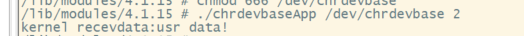 chrdevbaseAPP 使用 write 函数向 chrdevbase 设备写入数据"usr data!"。chrdevbase_write 函数接 收到以后将其打印出来。说明对 chrdevbase 的写操作正常。