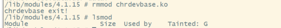 如果不再使用某个设备的话可以将其驱动卸载掉,比如输入如下命令卸载掉 chrdevbase 这个设备: