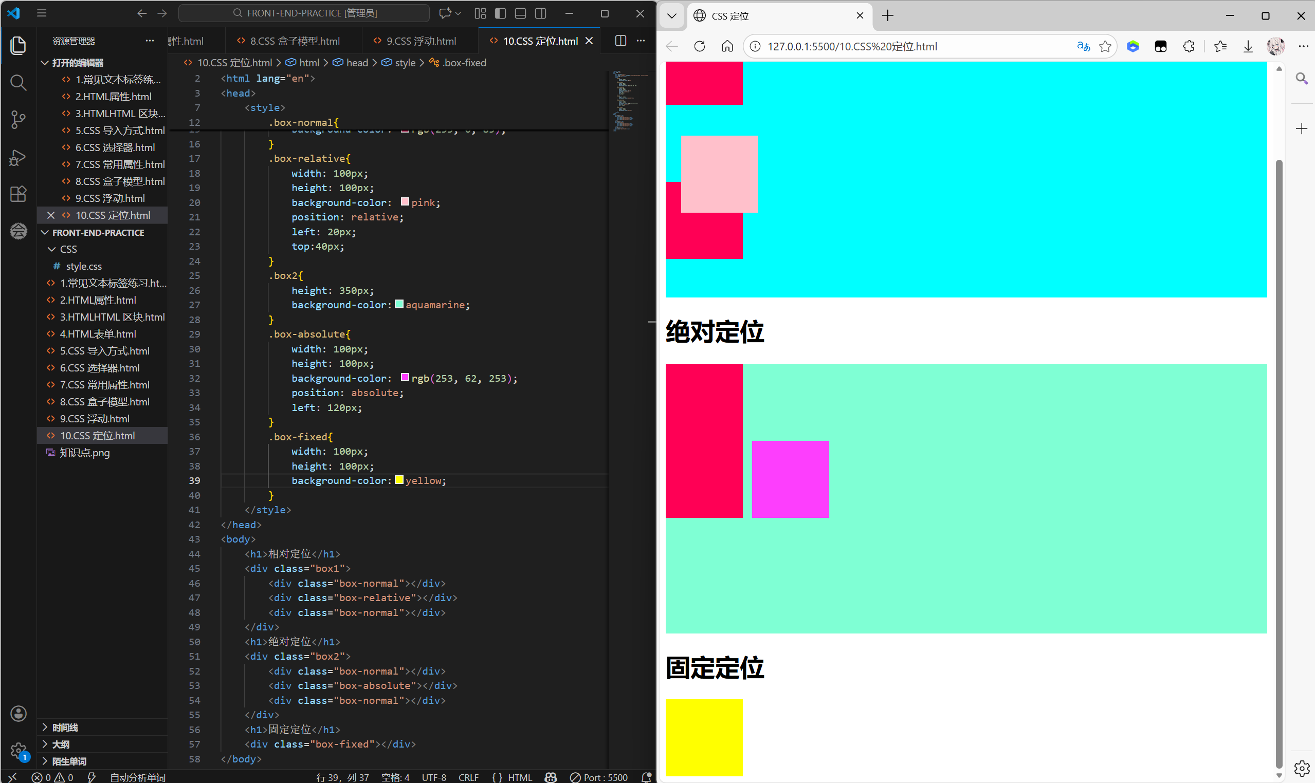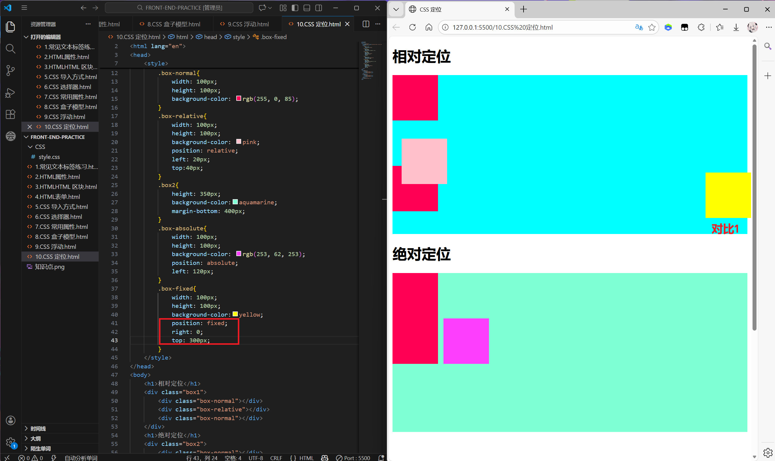 | 固定定位 (fixed) | 浏览器视口窗口 | 脱离 | 位置固定,不随页面滚动 | 固定导航、返回顶部按钮 |