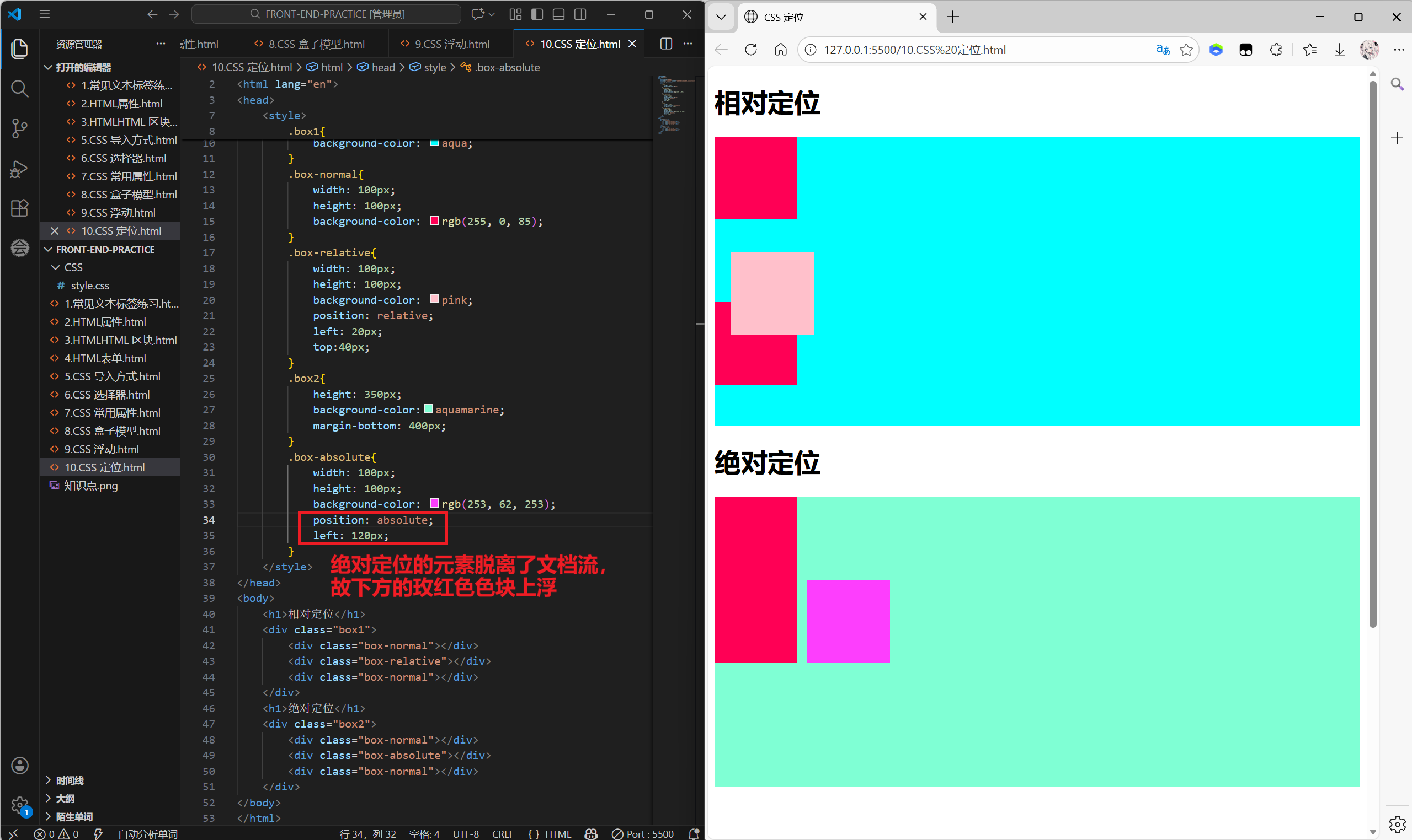 - 让元素脱离文档流,不再占据标准流的空间。