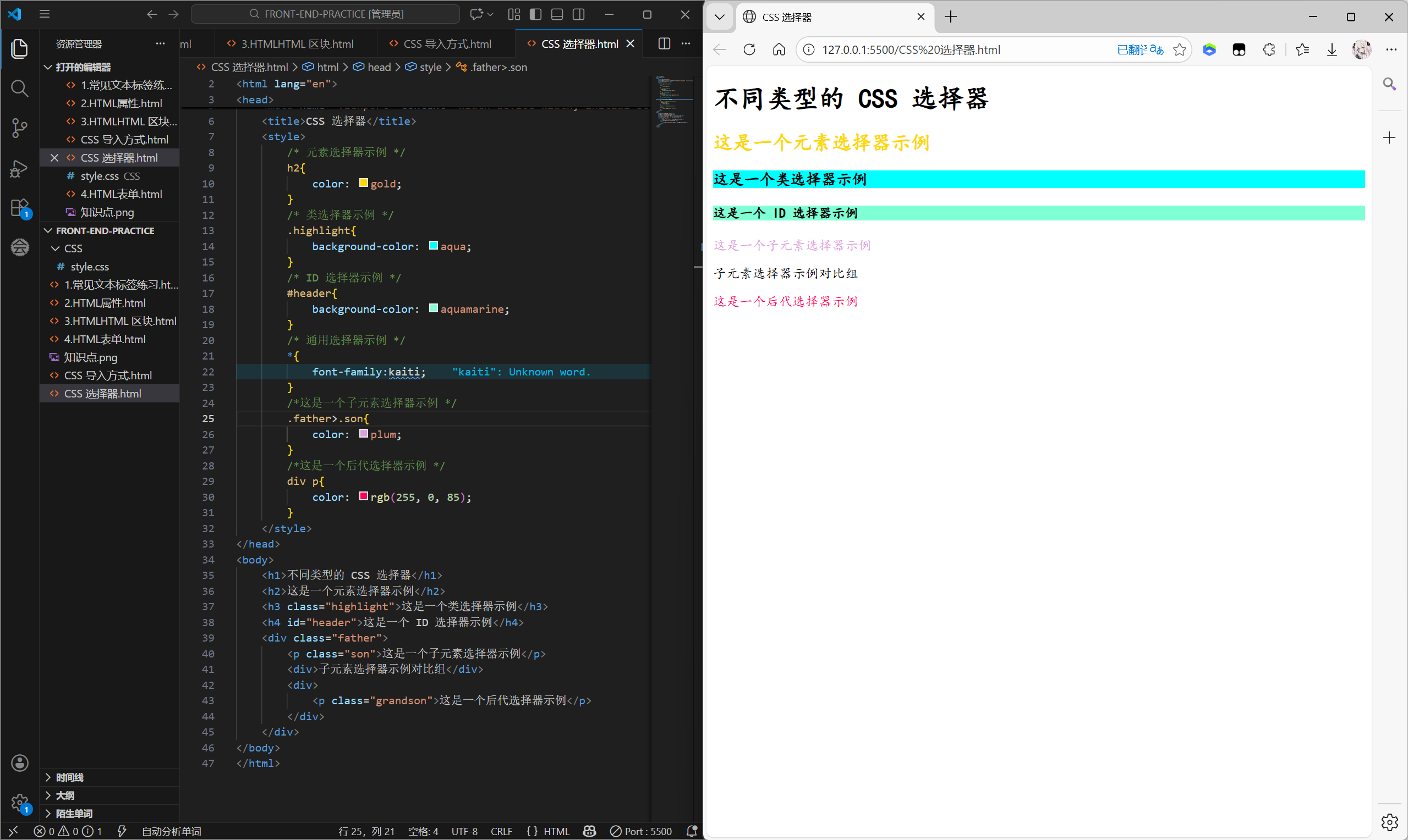 在学习完 HTML 的基础知识点以后,我们迎来了CSS知识点的学习。一句话说明 HTML 和 CSS 的区别与联系就是:HTML负责定义页面的结构和内容,CSS负责控制页面的外观和样式。