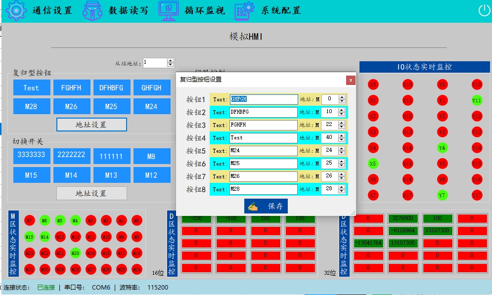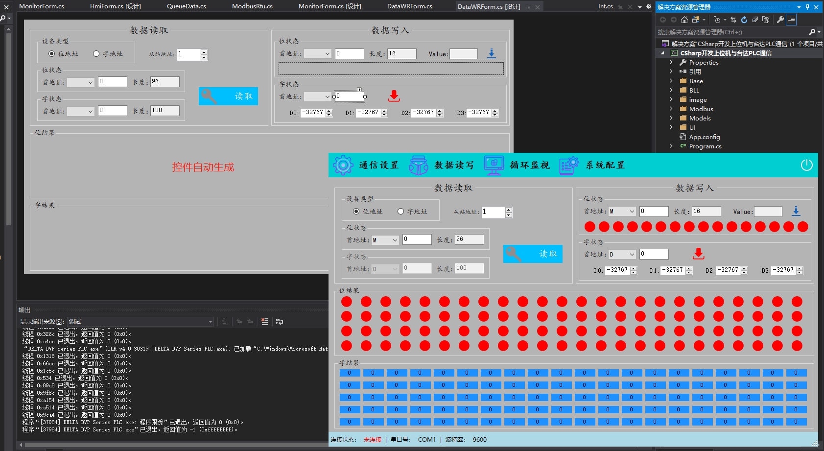 台达plc与C#串口通信程序,可同步读写操作,实时监控。 监控地址通过xml文件配置,控件自动生成。