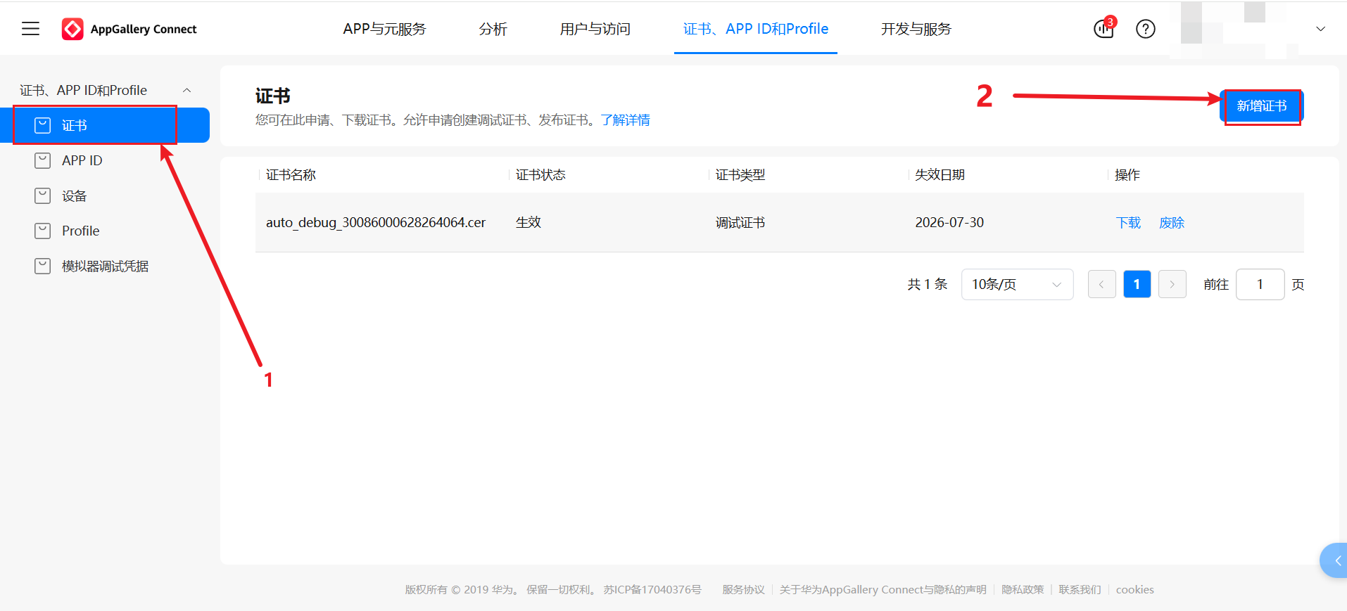 3.2 AppGallery Connect 平台证书与 Profile 配置