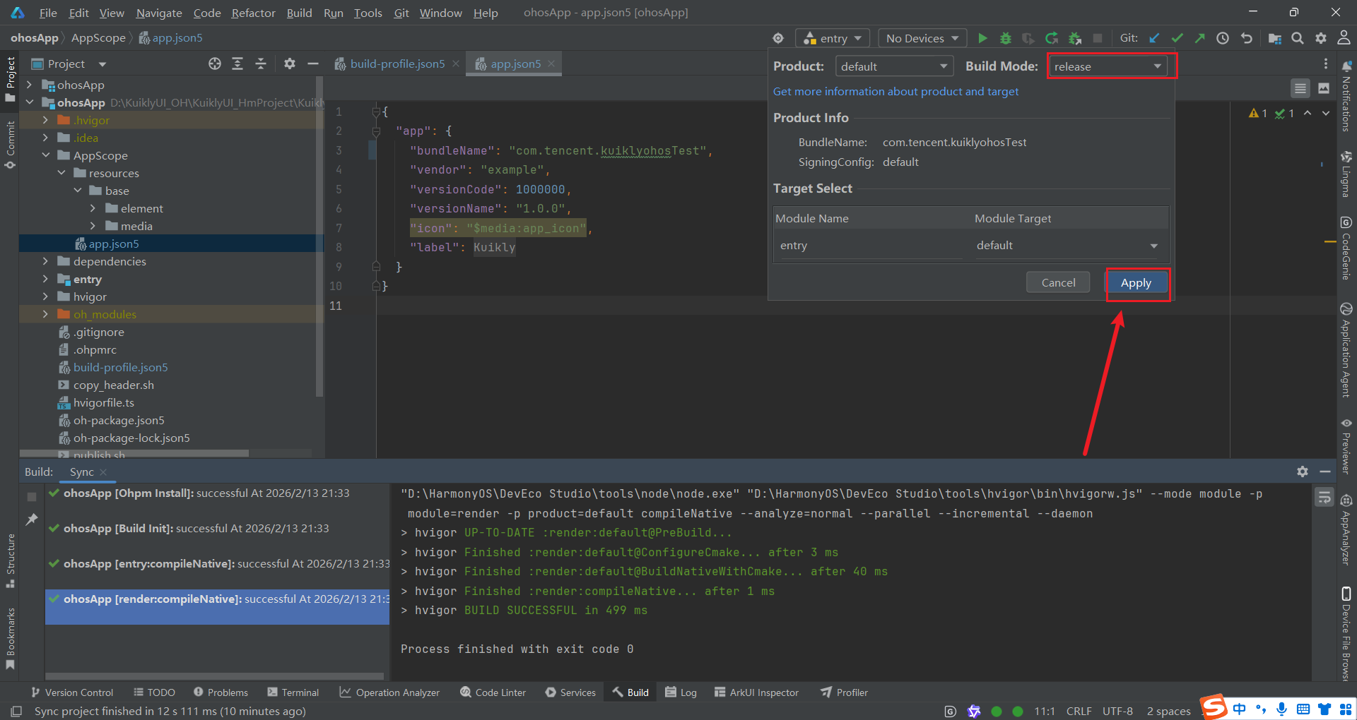 签名配置完成后,我们可以构建 Release 版 HAP 包,用于部署到鸿蒙设备。