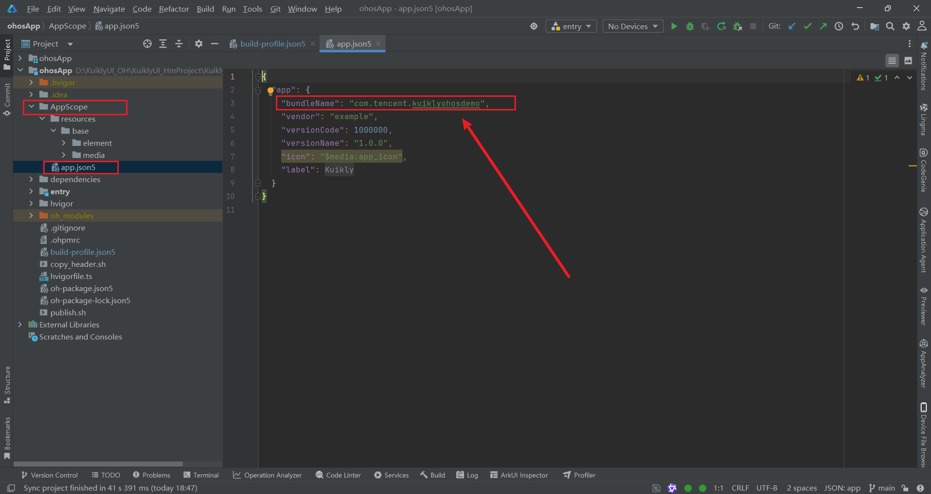 HarmonyOS应用,应用名称填写KuiklyUI_HmProject,应用包名需与app.json5中的bundleName完全一致(如原来的报名可能为com.tencent.kuiklyohosTest ,我在后面的操作中修改为com.tencent.kuiklyohosTest)。