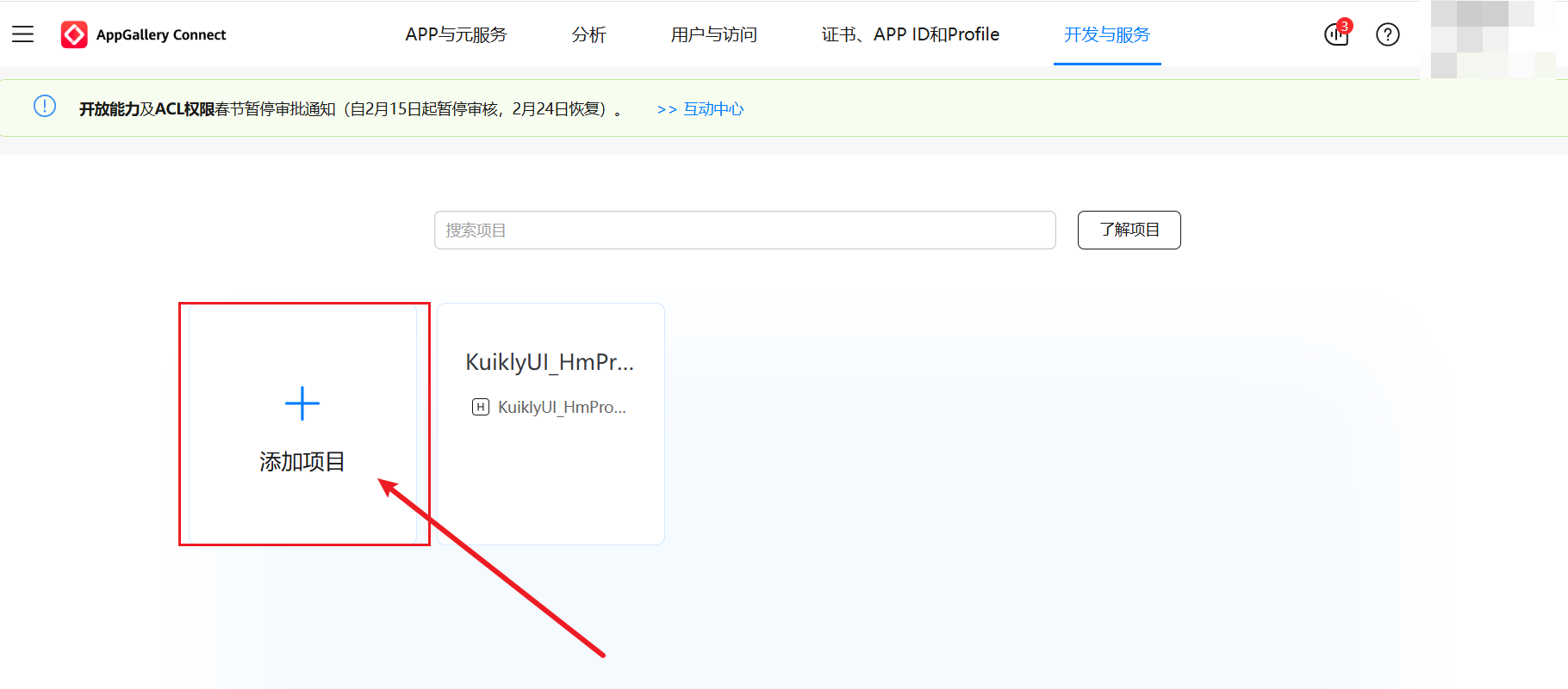 - 登录 AppGallery Connect 控制台,进入