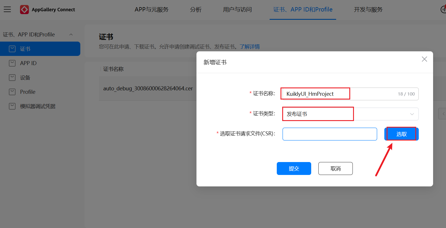csrfile文件夹中的KuiklyUI_HmProject.cer。
