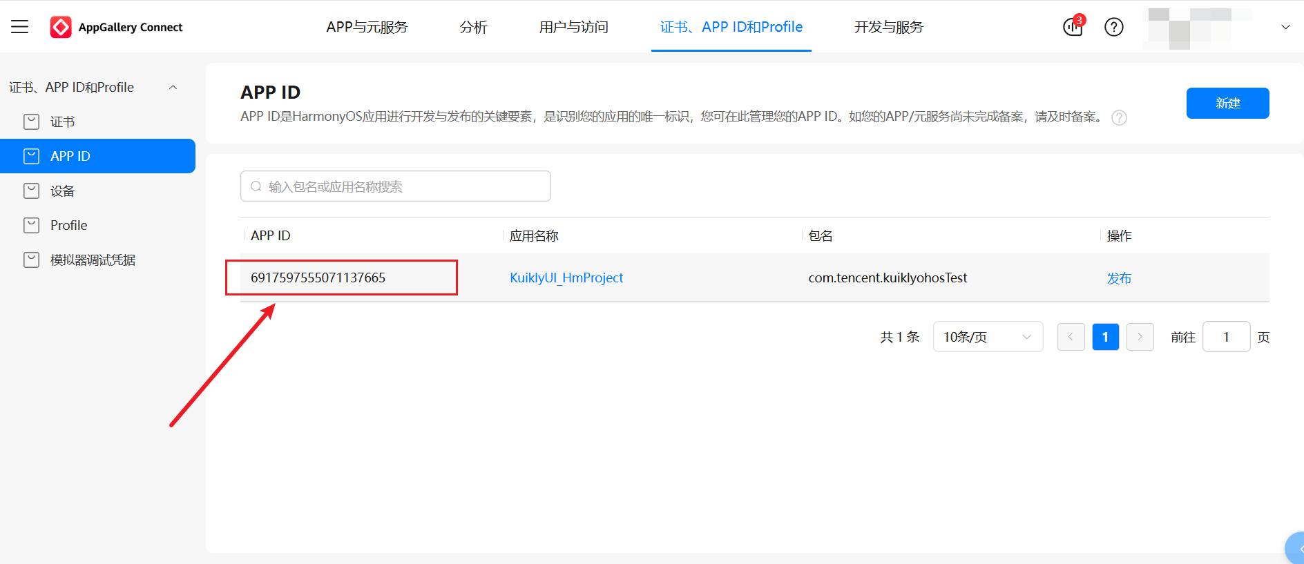 - 在 AppGallery Connect 控制台,进入