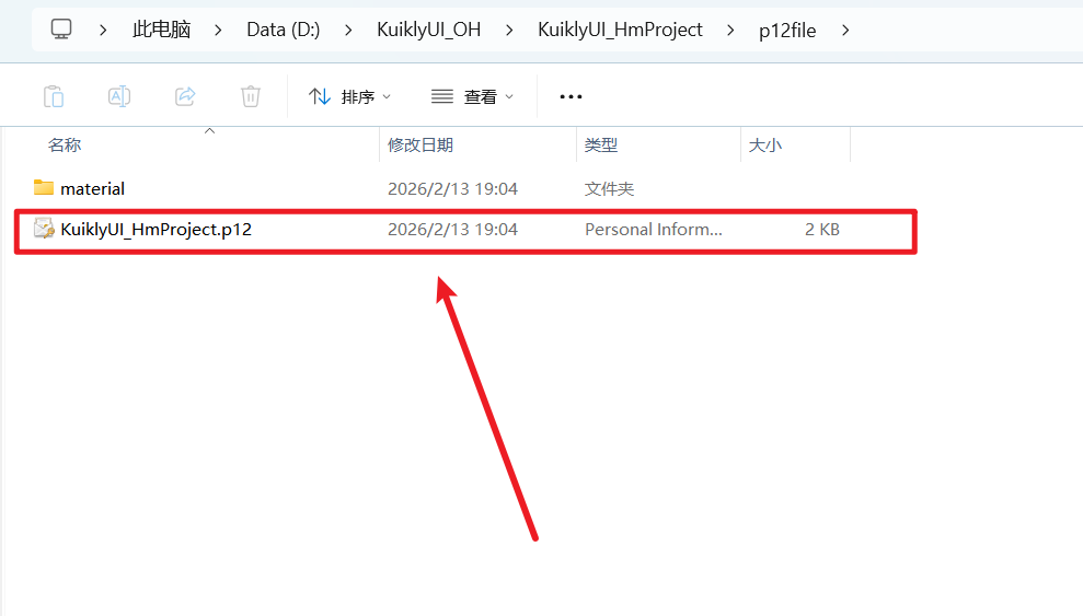 p12file文件夹,将文件命名为KuiklyUI_HmProject.p12,点击OK。