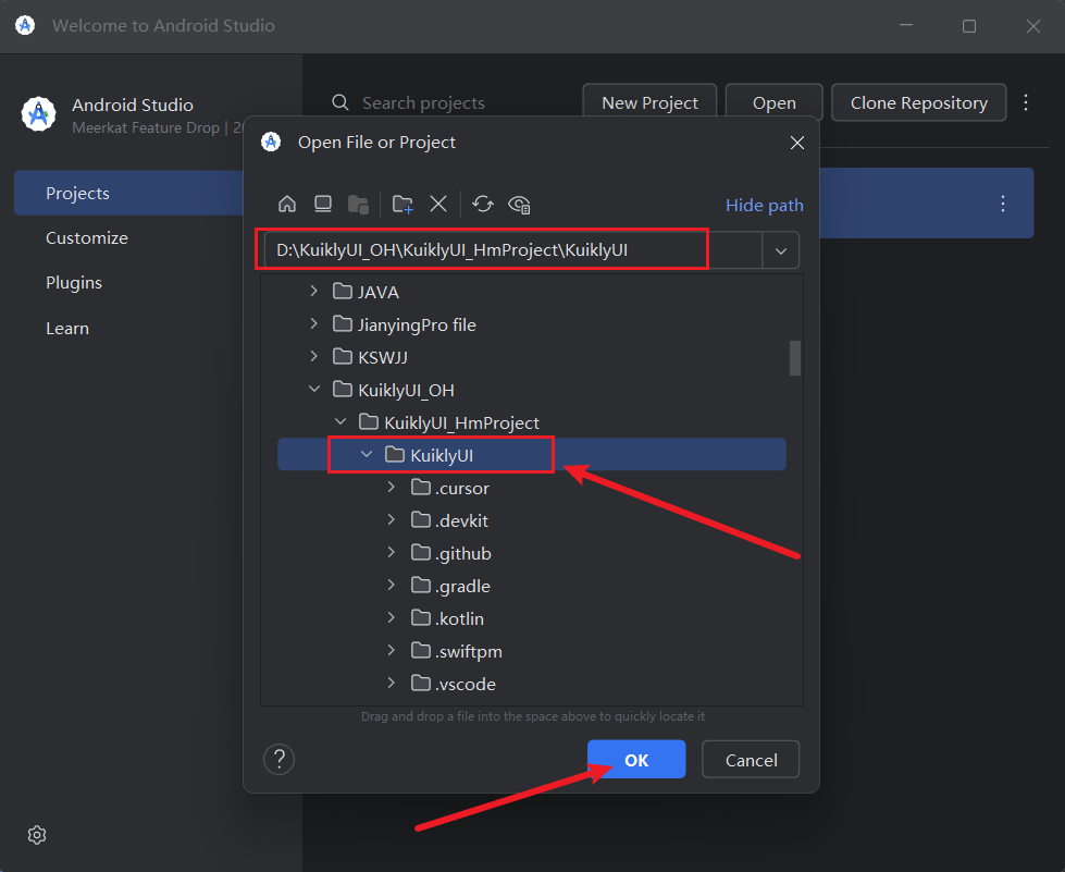 路径示例:D:\KuiklyUI_OH\KuiklyUI_HmProject
