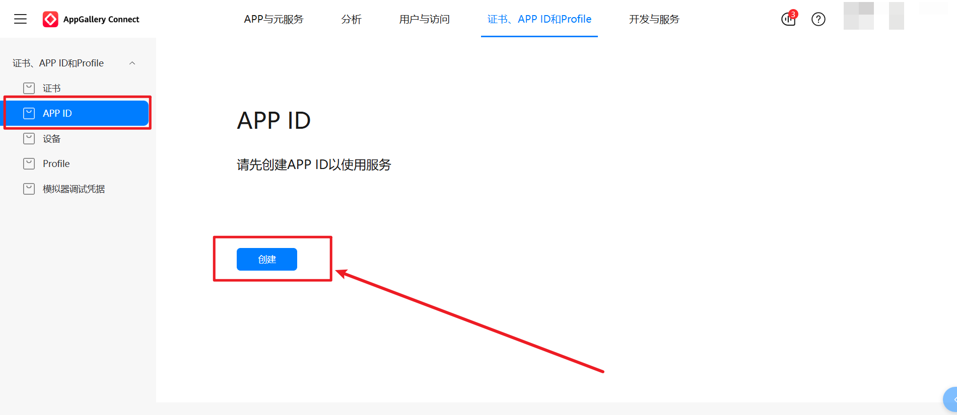APP ID,点击创建。