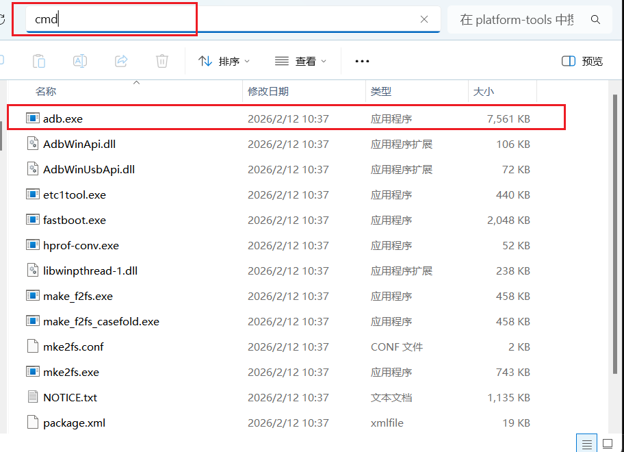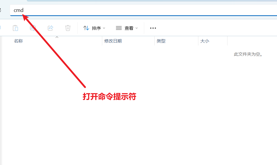 打开文件资源管理器,在地址栏输入 cmd 并回车,快速在当前目录打开命令提示符。