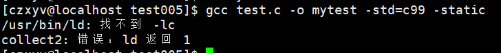 在使用-static选项时可能会出现上面的报错,我们需要安装静态库的编译环境yum install glibc-static。