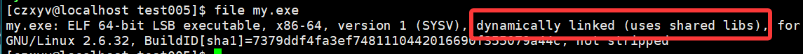 我们使用file命令也可以看到可执行程序使用的是动态库。